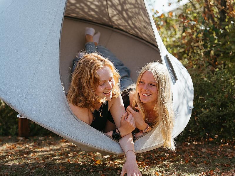 • In de Fonkeltuin is het fijn vertoeven met plekjes om gemoedelijk samen te zijn en er zijn hangmatten voor rustmomenten