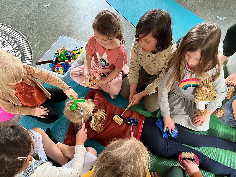 We leren hoe we elkaar en onszelf kunnen masseren, we leren (kort) mediteren