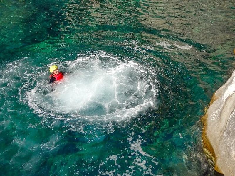 We trotseren de rotsachtige kustlijn tijdens een voormiddag coasteering en springen van kliffen
